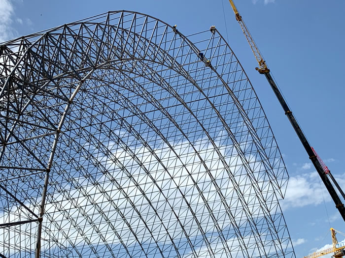 (2)网架加工前应对现场尺寸进行复测,确认无误后方可进行加工、安装;网架制作、运输、安装应遵守《空间网格结构技术规程》JGJ7-2010、《钢网架邓州螺栓球节点》JG/T 10-2009、《钢网架邓州螺栓球节点用高强度螺栓》 GB/T 16939-2016、《邓州钢结构邓州工程邓州施工规范》 GB50755-2012、《邓州钢结构邓州工程施工质量验收标准》 GB50205-2020。